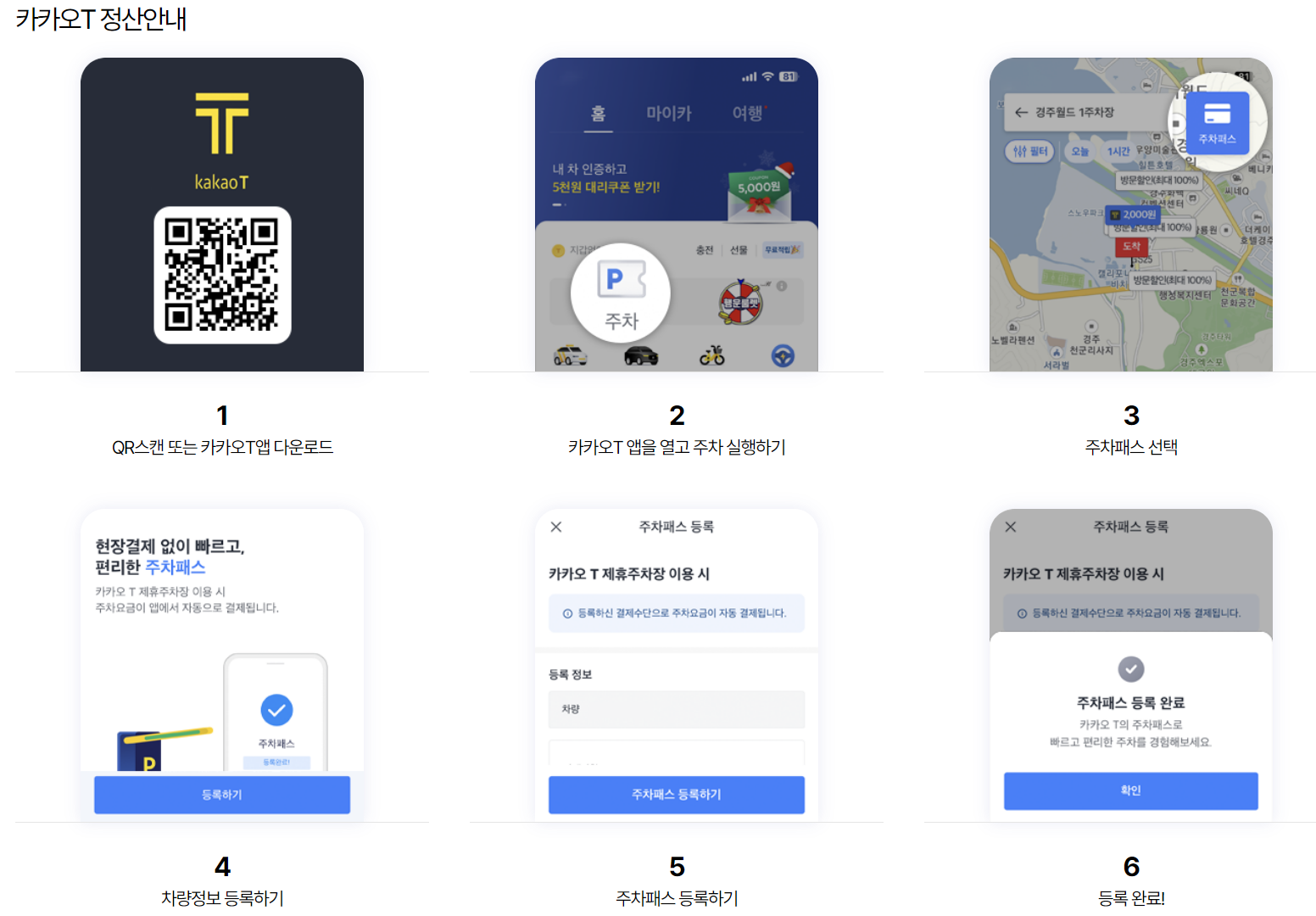 정문과 가까운 1,2 주차장의 경우 5천원의 주차비용이 있습니다. 단, 카카오T 등록 후 출차시 2천원으로 자동 결제되니 사용하지 않을 이유가 없습니다. 카카오T 등록 후 2천원의 저렴한 가격으로 편리한 1,2 주차장을 이용해 보시기 바랍니다. 카카오T에서 볼때는 5천원으로 보이지만, 출차 시 실 결제는 2천원으로 되니 걱정하지 않으셔도 됩니다.