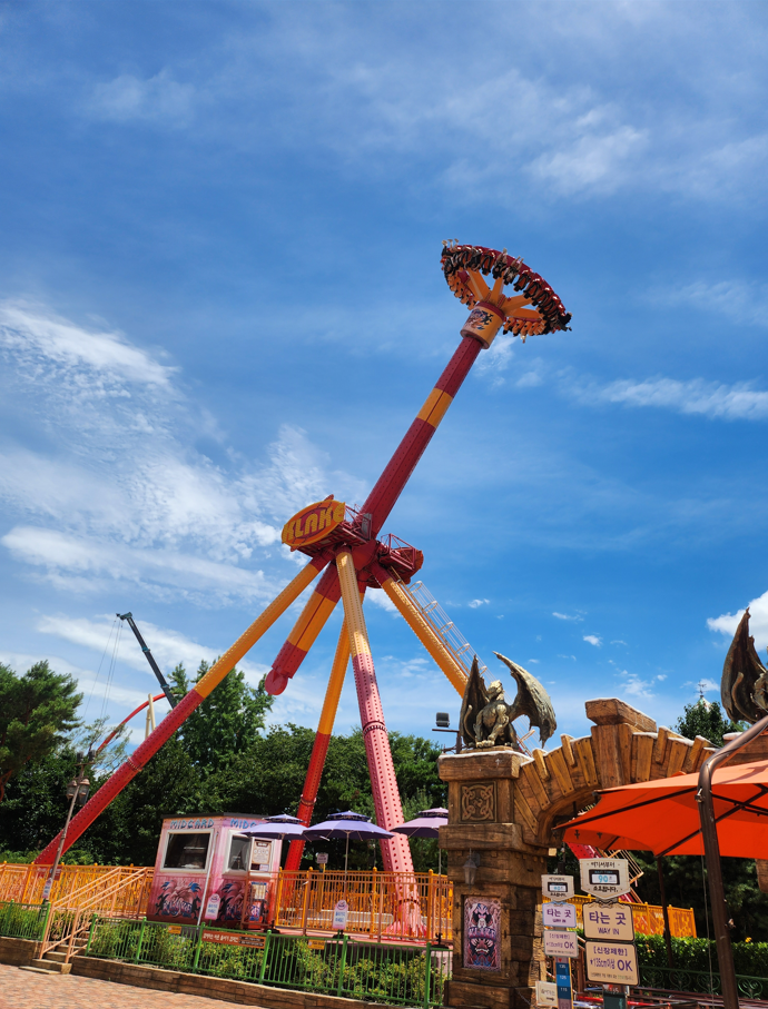 드라켄은 경주월드의 대표적인 롤러코스터로, 최고 높이 61미터에서 90도 수직으로 낙하하는 스릴을 제공합니다. 드라켄의 빠른 속도와 아찔한 낙하는 모험심을 자극하며, 많은 방문객들이 찾는 인기 놀이기구입니다. 스릴있는 놀이기구를 좋아하는 분이라면 꼭 도전해야 하는 놀이기구라는 생각이 듭니다. 저와 딸은 3번 연속으로 타고, 돌아오기전에 한번 더 타서 총 4번을 탔습니다. 다음에 경주에 온다면 꼭 다시 도전하고 싶습니다. 경주월드 놀이기구 넘버 원!!